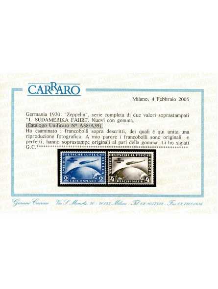 I FRANCOBOLLI SONO CORREDATI DA CERTIFICATO DI GARANZIA CARRARO E DA FIRMA DI GARANZIA A. DIENA