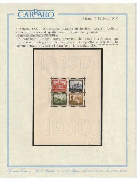 1930 GERMANIA REICH EXPO IPOSTA 30 BF N° 1 MNH CARRARO MF127308