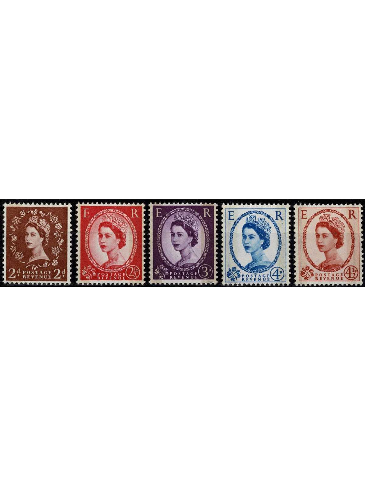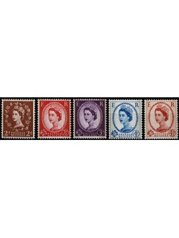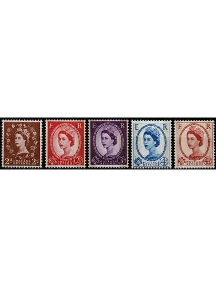 1959 GRAN BRETAGNA ELISABETTA II GRAFITE E FOSFORO N. 346F/350F 5 V MNH MF135281