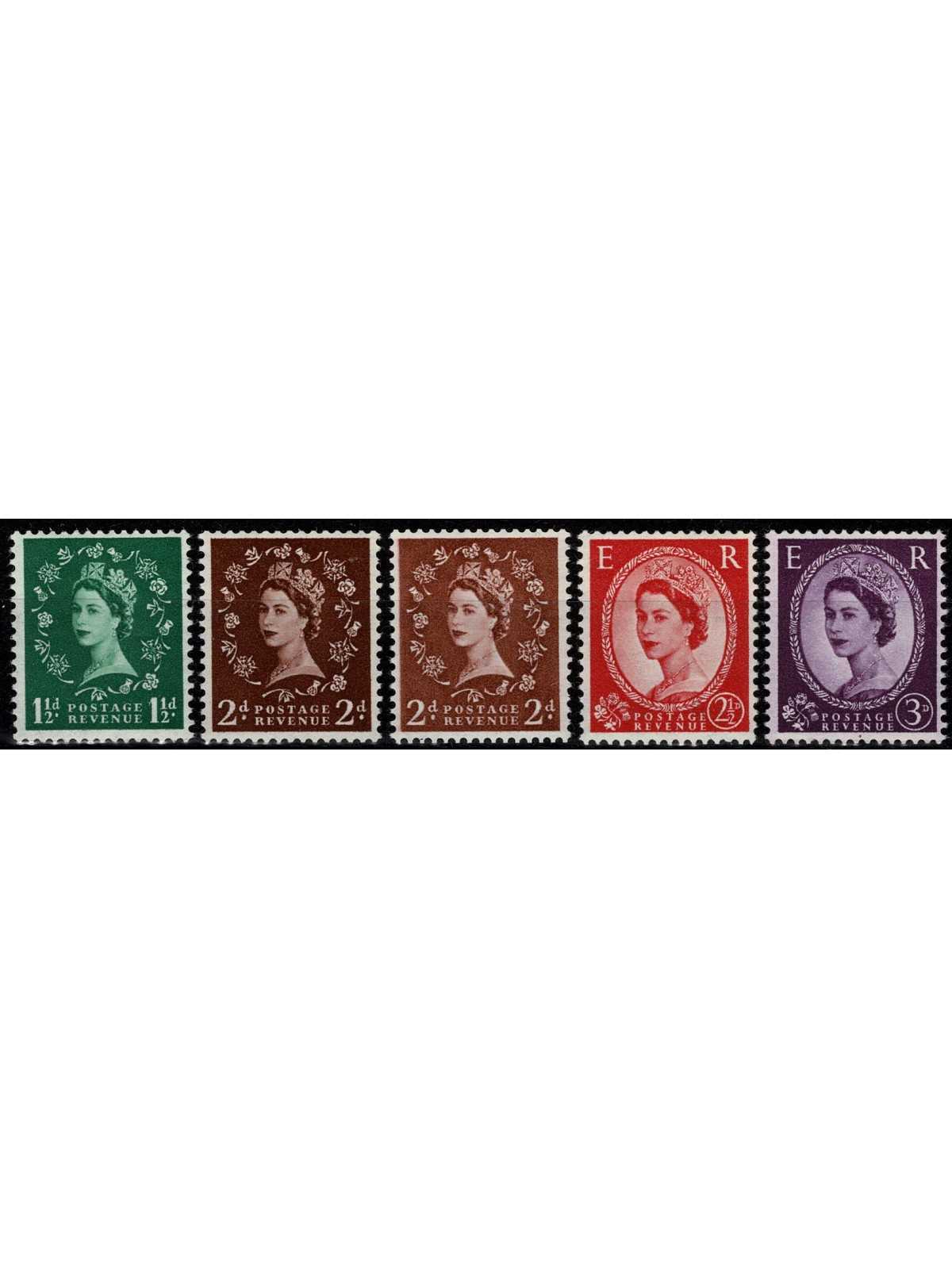 1955-56 GRAN BRETAGNA ELISABETTA II N 289c/291Ac 5 V. FIL CORICATA MNH MF135271