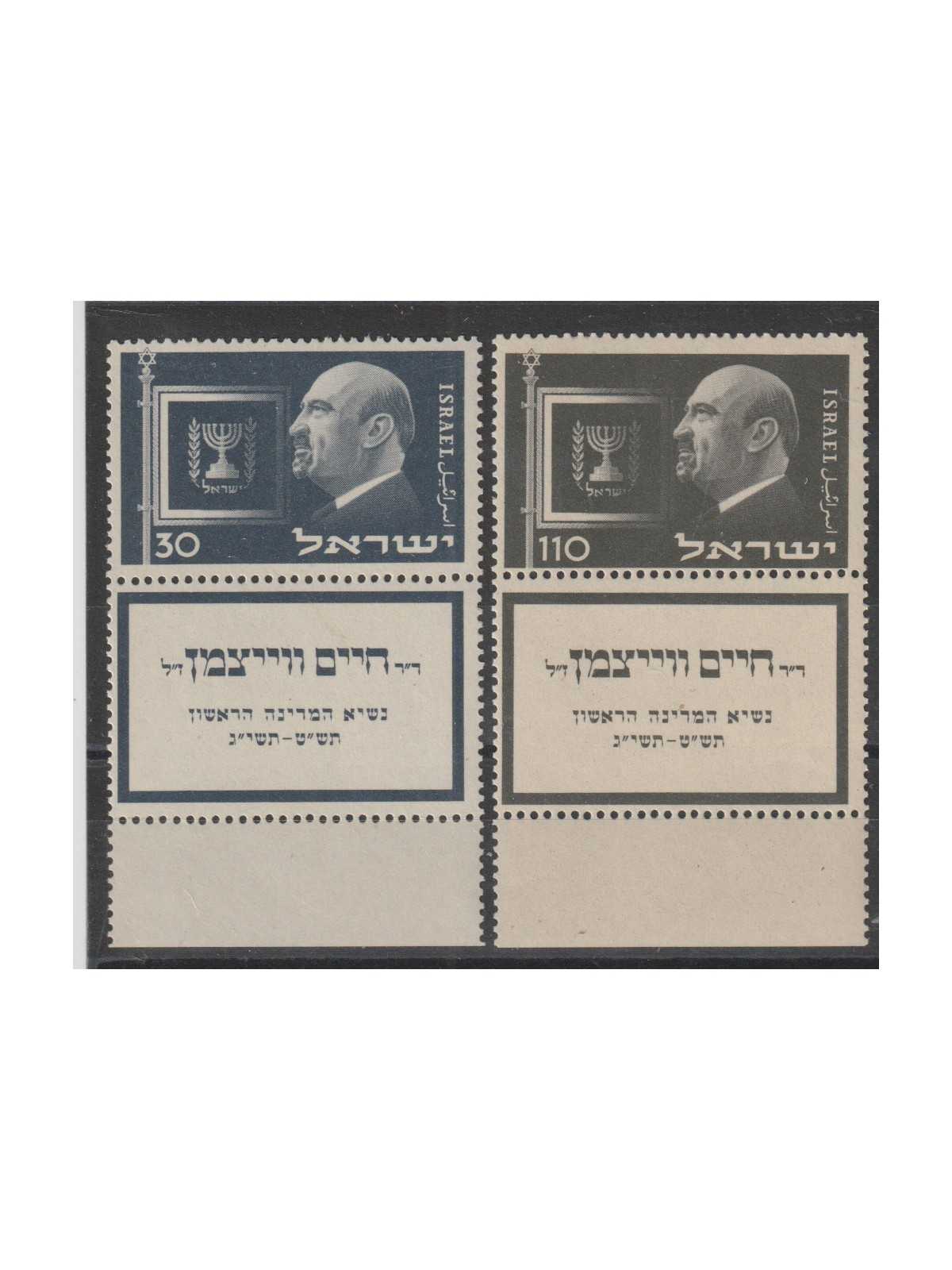 1952 ISRAELE Z.O.A. PRESIDENTE H. WEIZMANN CON APPENDICE COMPLETA 2 V. MNH MF128540