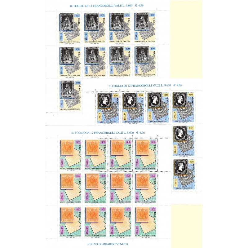 2001 ITALIA 150 ANNIVERSARIO FRANCOBOLLI ANTICHI STATI 3 MINIFOGLI MNH MF61086