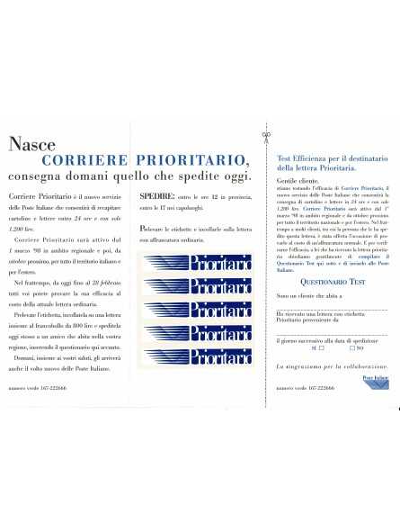 1998 REPUBBLICA ITALIANA QUESTIONARIO CORRIERE PRIORITARIO CON ETICHETTE MF133996
