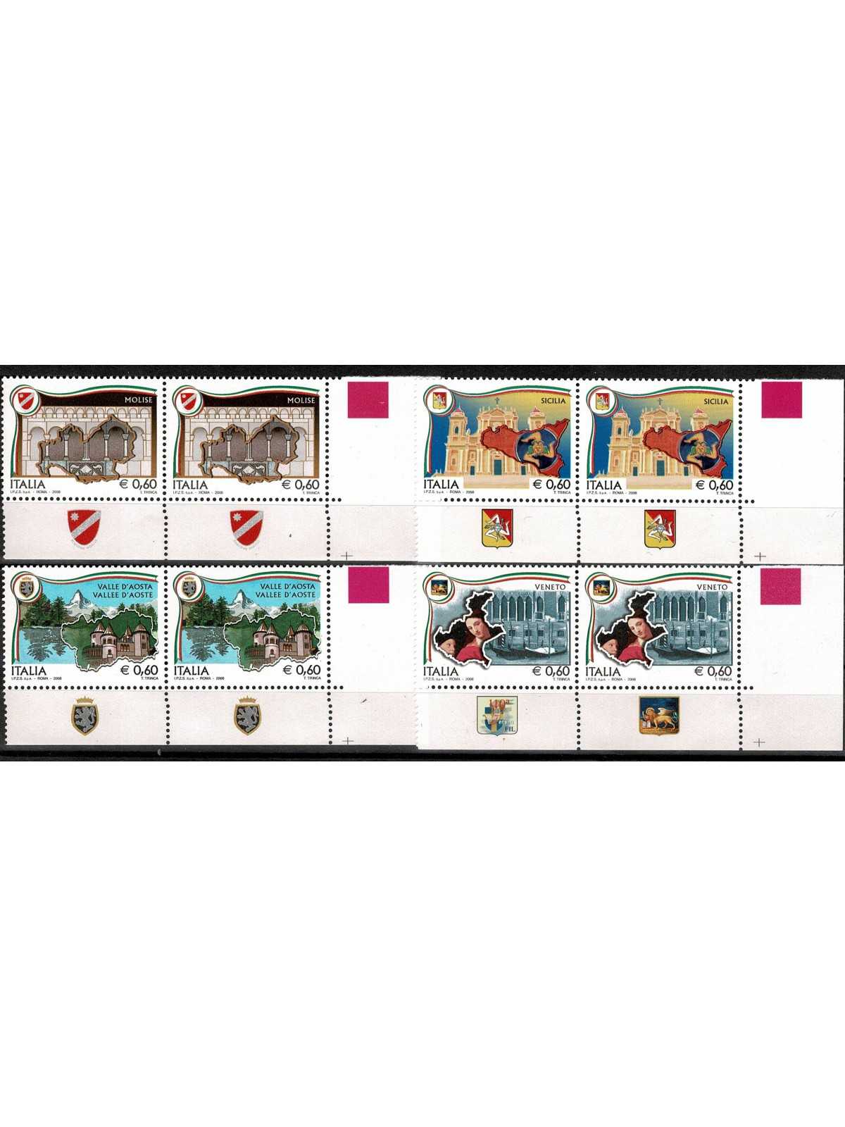 2008 REPUBBLICA ITALIANA n. 3084 / 3087 REGIONI CON BANDELLA 4 V COPPIA MF102278