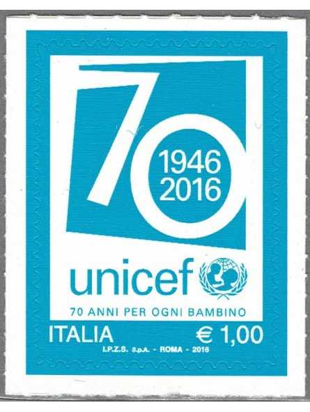 2016 REPUBBLICA ITALIANA n. 3796 70° ANNIV. UNICEF 1 V. MNH MF132424
