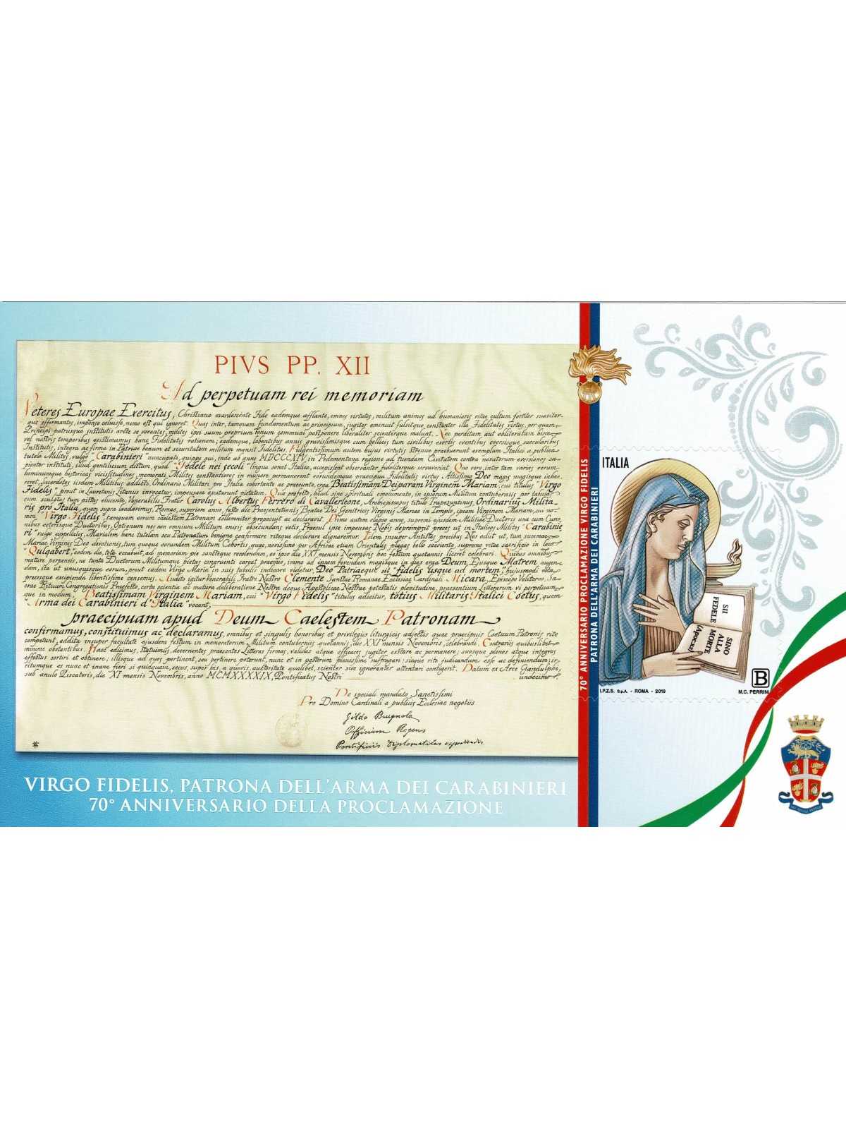 2019 ITALIA 70° ANIV. PATRONA ARMA CARABINIERI VIRGO FIDELIS - BF MNH MF134104