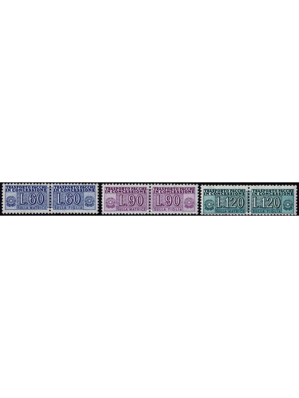 1958 REPUBBLICA ITALIANA PACCHI IN CONCESSIONE FIL STELLE 3 V. MNH MF133733