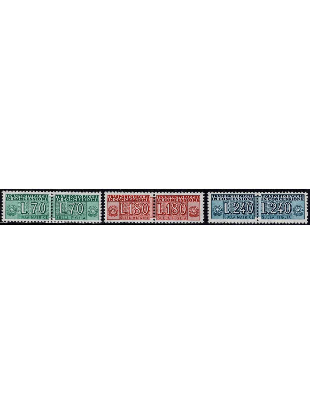 1966 REPUBBLICA ITALIANA PACCHI IN CONCESSIONE FIL STELLE 3 V. MNH MF109419