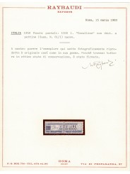 1954 PACCHI POSTALI 1000 LIRE CAVALLINO CENTRATO MNH CERT. RAYBAUDI MF133698