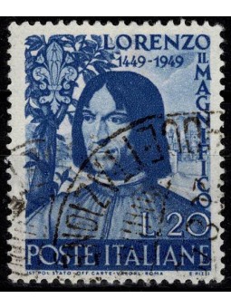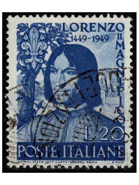 1949 REPUBBLICA ITALIANA 5 CENTENARIO NASCITA LORENZO MAGNIFICO USATO MF8900
