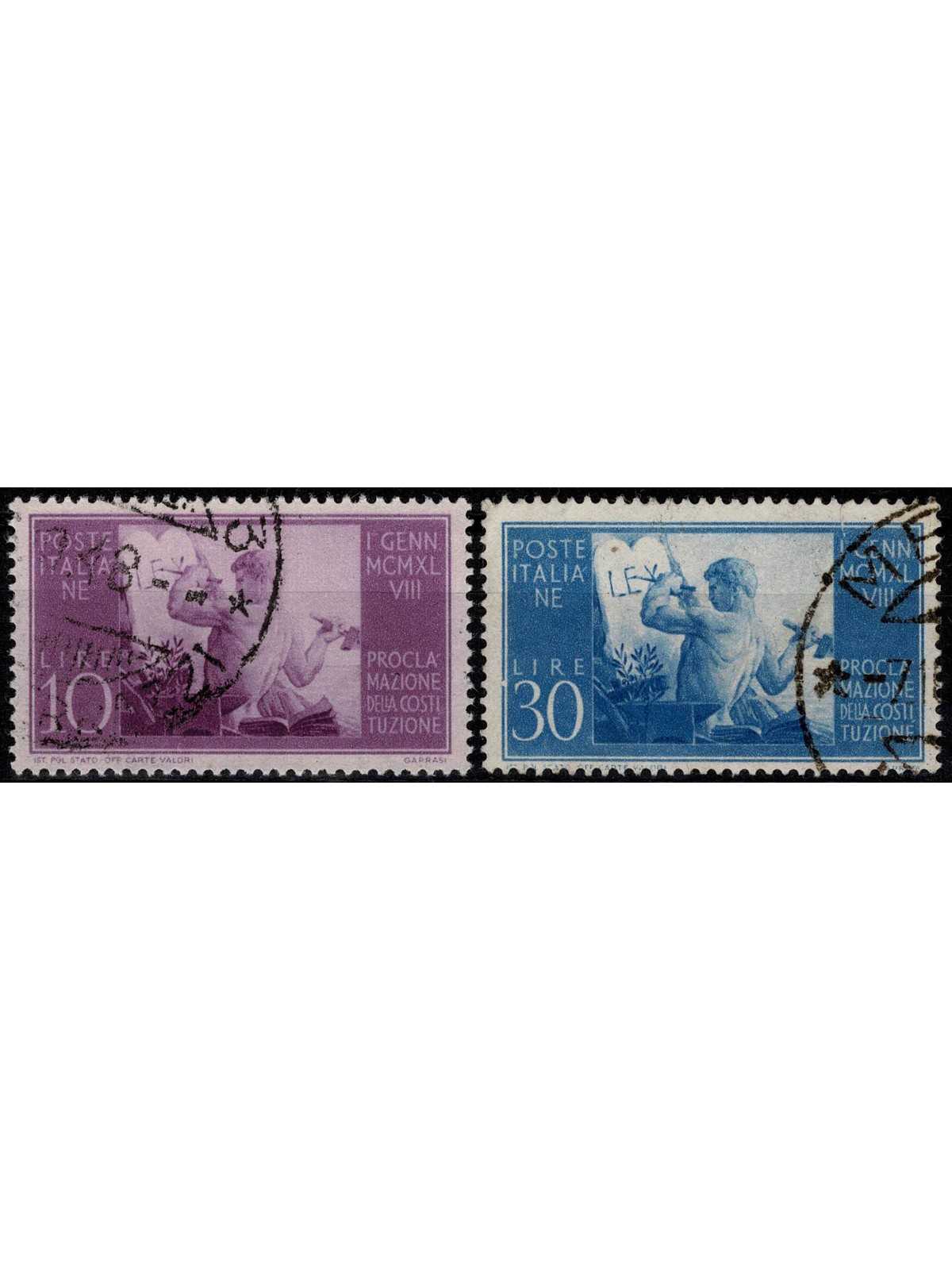 1948 REPUBBLICA ITALIANA SERIE PROCLAMAZIONE COSTITUZIONE 2 V USATI MF16090