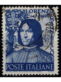 1949 REPUBBLICA ITALIANA 5 CENTENARIO NASCITA LORENZO MAGNIFICO USATO MF133971