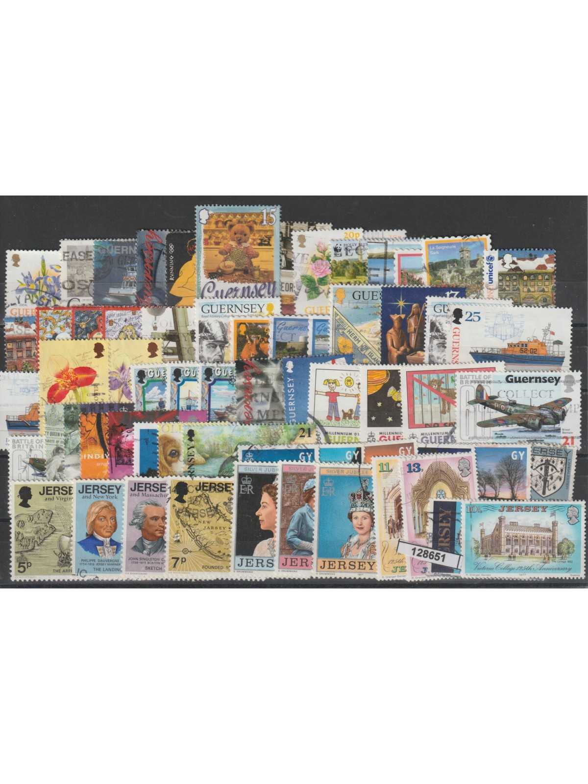 JERSEY E GUERNESEY LOTTO DI 60 FRANCOBOLLI USATI DIFFERENTI MF128651