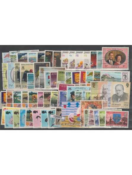 JERSEY LOTTO DI 60 FRANCOBOLLI USATI DIFFERENTI MF128653