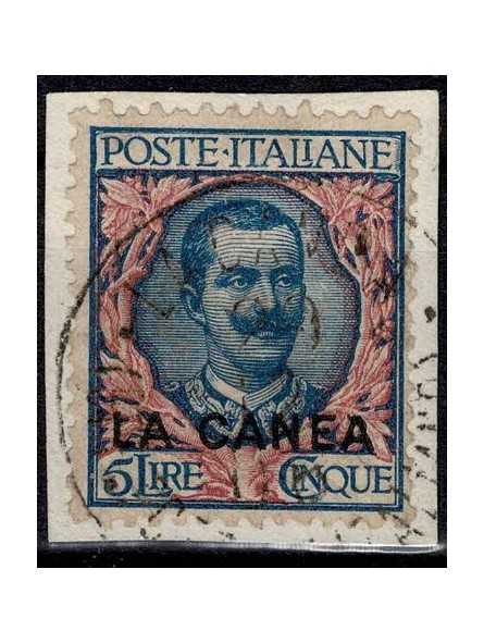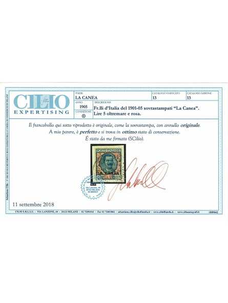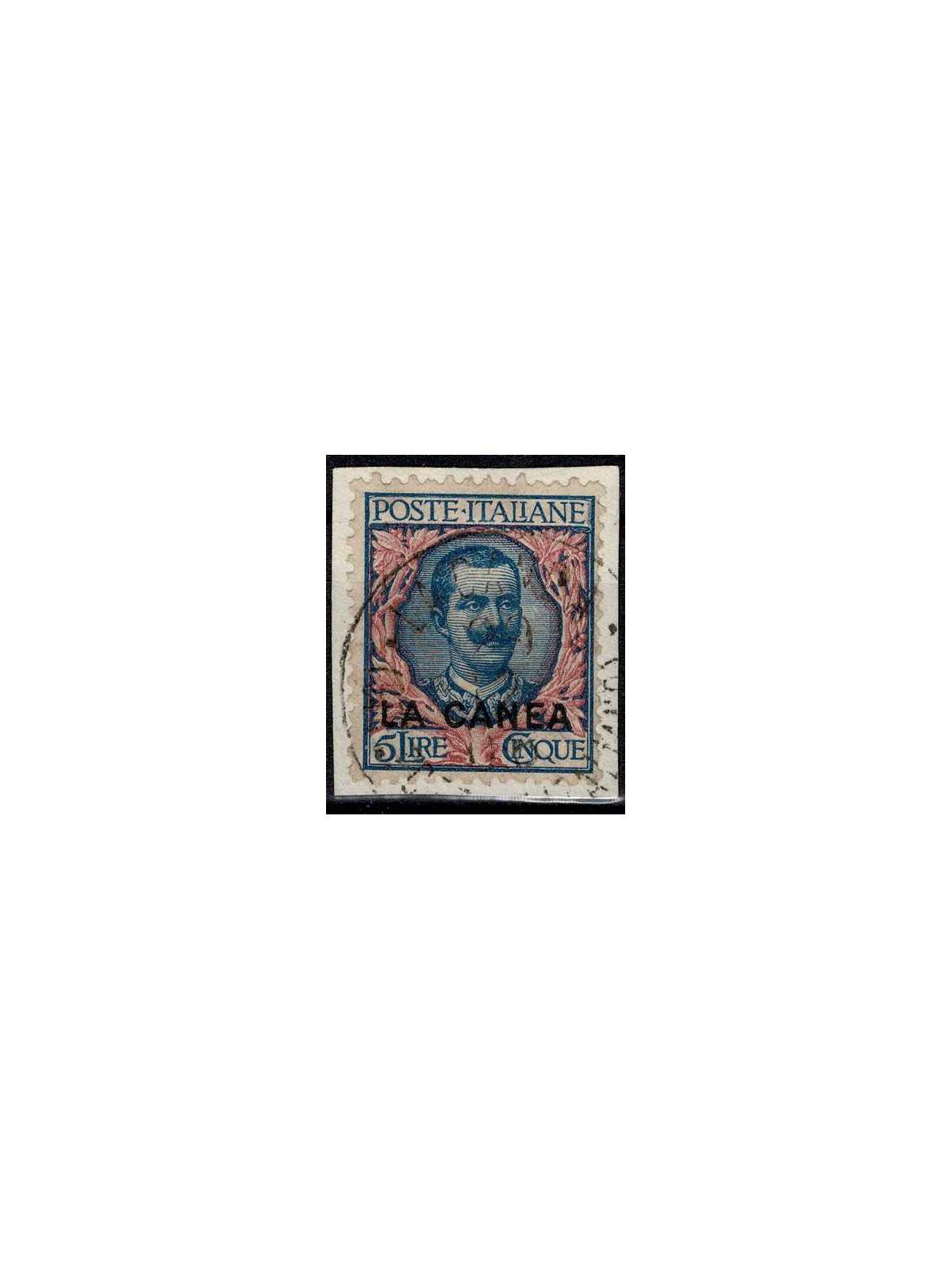 1905 LEVANTE LA CANEA LIRE 5 FLOREALE SOPRASTAMPATO 1 VAL USATO SASS. N. 13 CILIO MF58302