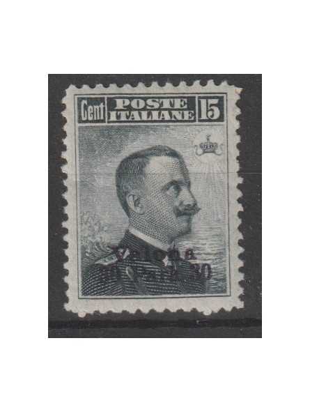 1909 LEVANTE VALONA SOPRAST. 30 pi. su 15 c. GRIGIO NERO 1 V. MLH N° 3 MF127988