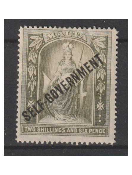 1922 MALTA GIORGIO V° SOPRASTSTAMPATO SELF-GOVERNMENT 2/6 s. GRIGIO OLIVA N°79 - 1 VAL MLH MF127932