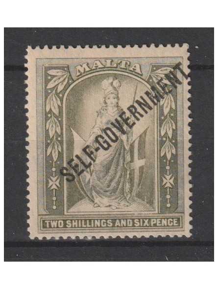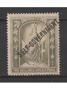 1922 MALTA GIORGIO V° SOPRASTSTAMPATO SELF-GOVERNMENT 2/6 s. GRIGIO OLIVA N°79 - 1 VAL MNH MF127933