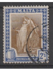 1922 MALTA ALLEGORIE GIORGIO V° 2s OLTREMARE E BRUNO 1 VAL USATO N°97 MF127935