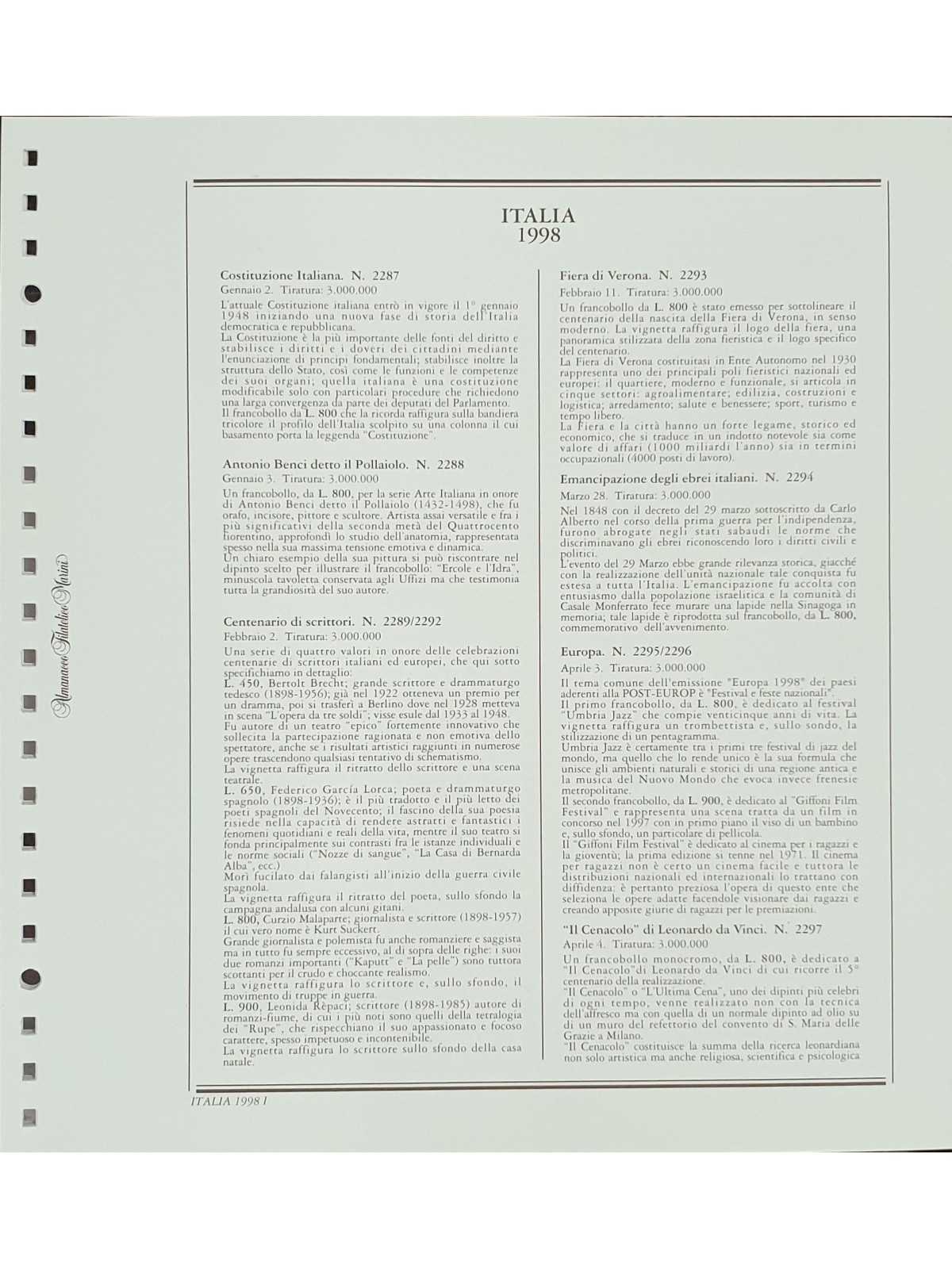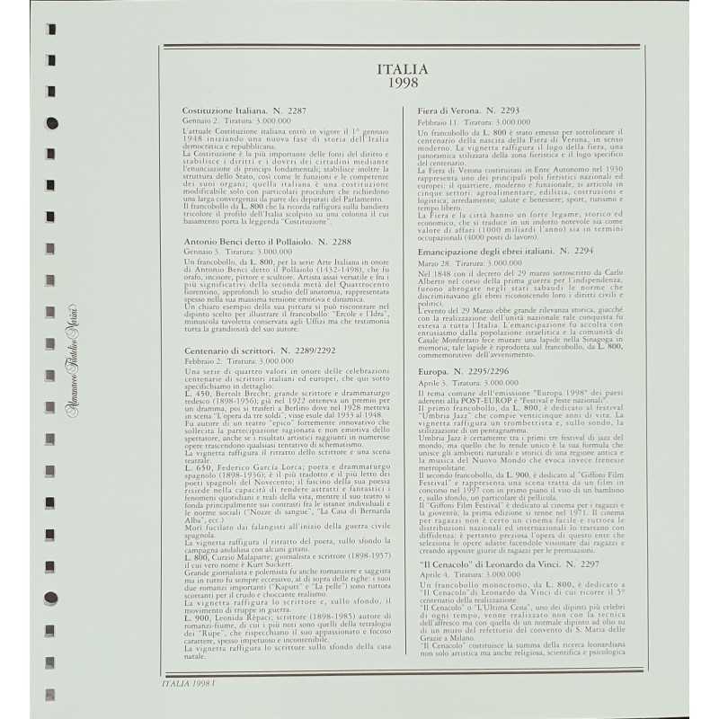 ITALIA 1998 FOGLI MARINI MODELLO KING USATO CON ALMANACCO 11 FOGLI MF62483
