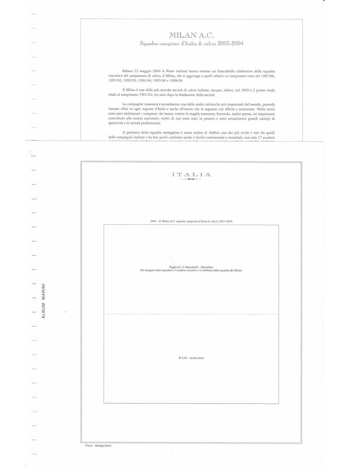 LA PAGINA IN VENDITA E' LA NUMERO ITALIA 2004 - MILAN A.C. + MINIFOGLI 2004/1