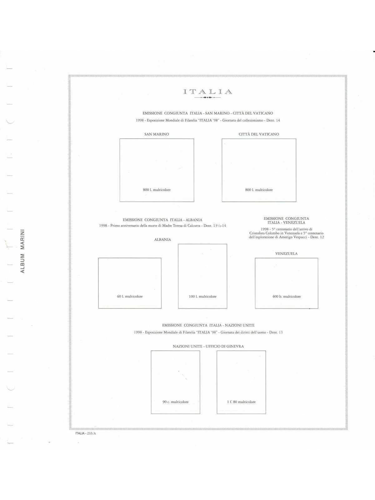 ITALIA 1998 FOGLI MARINI COMPLEMENTARI EM. CONGIUNTE 1 FOGLIO USATO MF63765