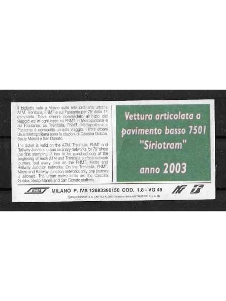ATM MILANO BIGLIETTO ORIGINALE USATO Vettura Articolata 7501 SirioTram MF112551