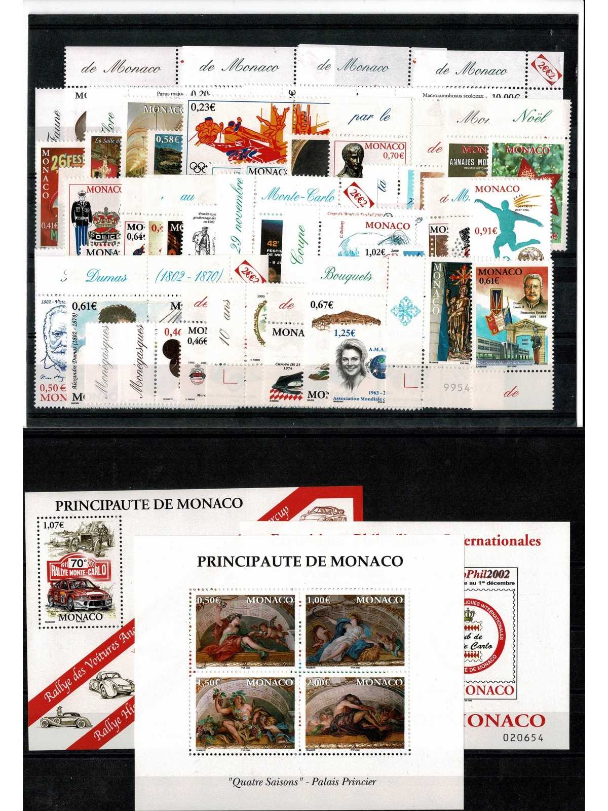 2002 MONACO ANNATA COMPLETA 57 VALORI + 3 BF MNH MF66164
