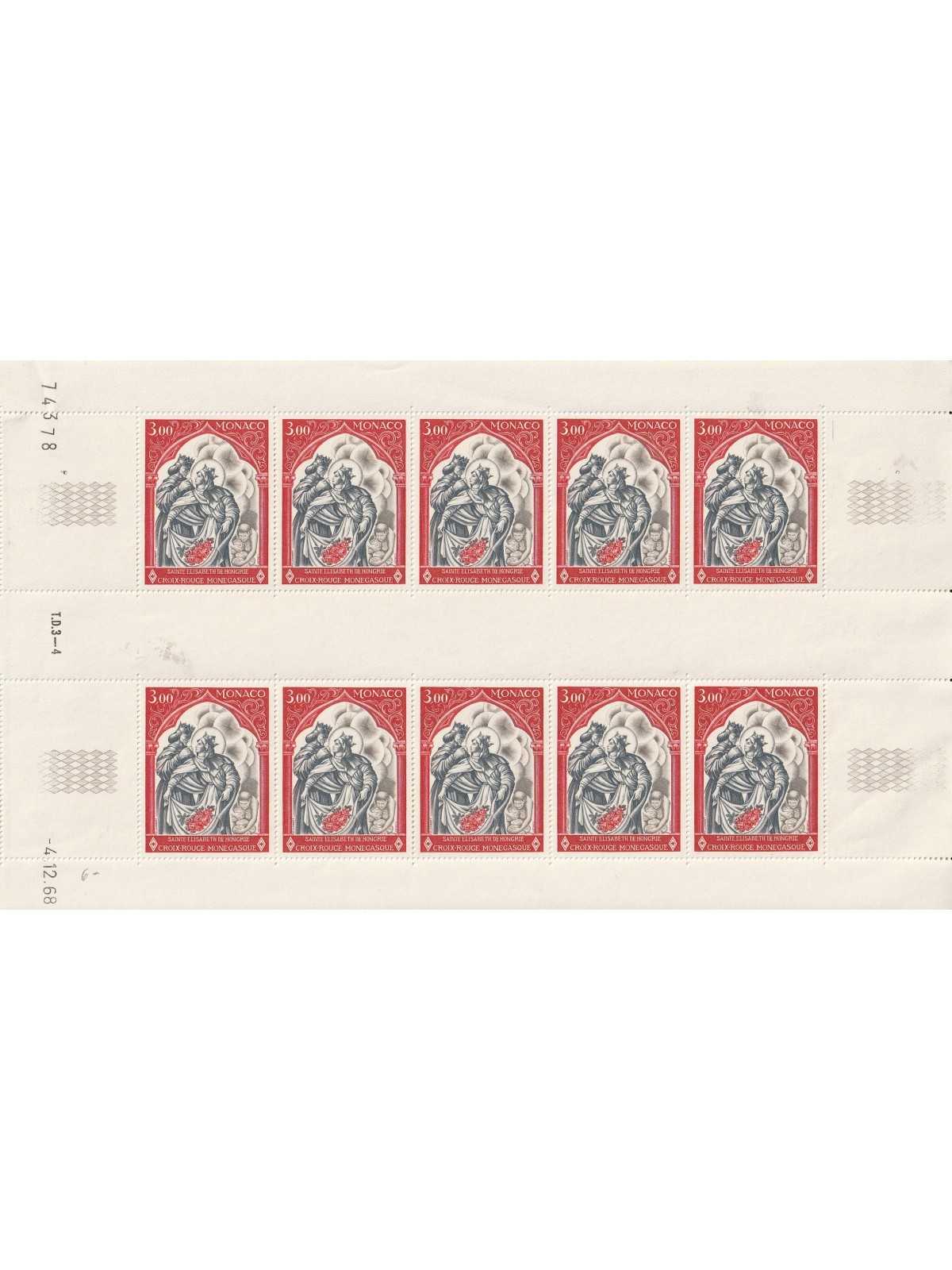 1969 MONACO QUADRI CROCE ROSSA FOGLIO DA10 FOTO MNH MF140087