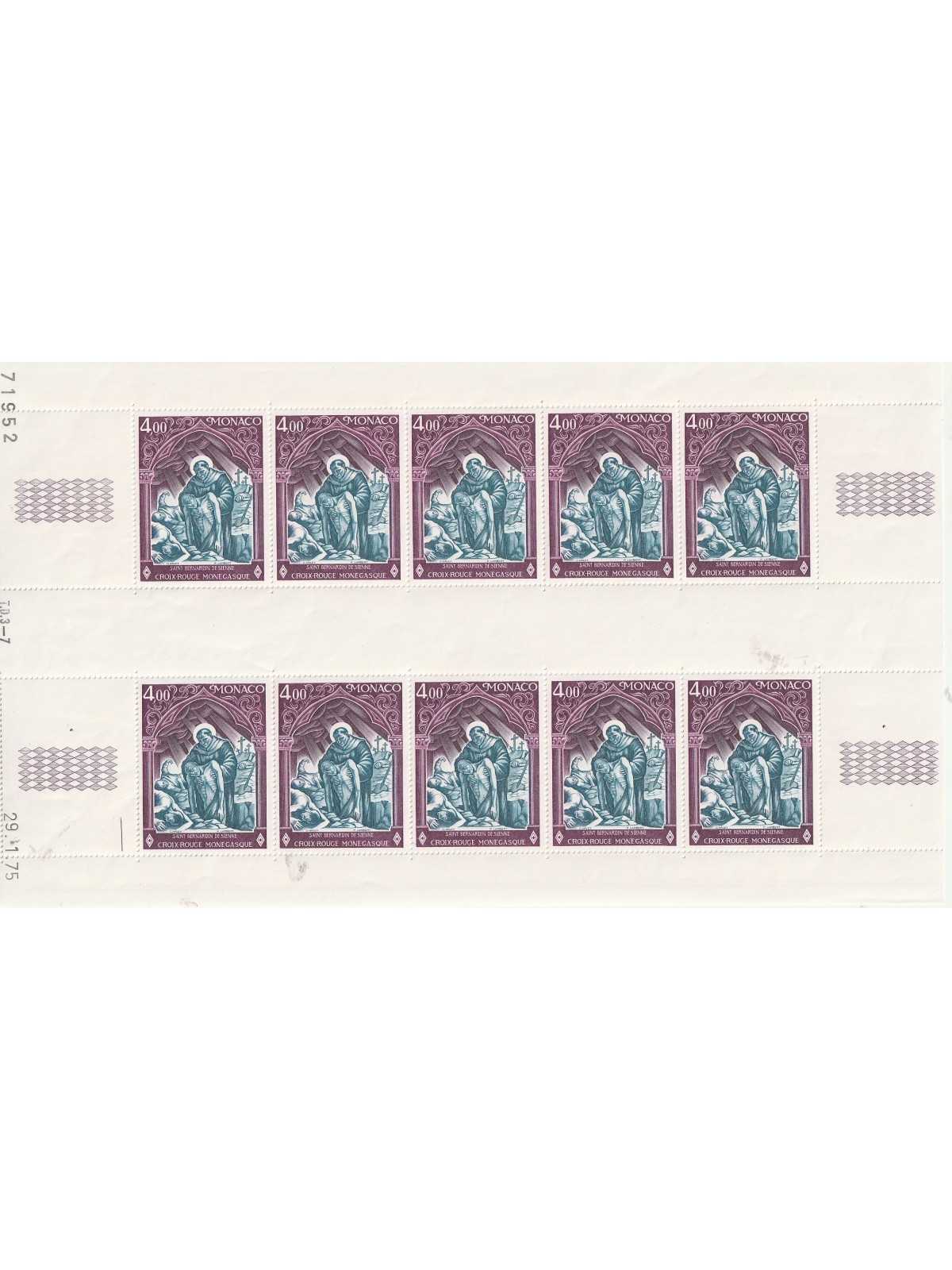 1975 MONACO CROCE ROSSA 1 VAL IN FOGLIO DA 10 - FOTO - MNH MF140090