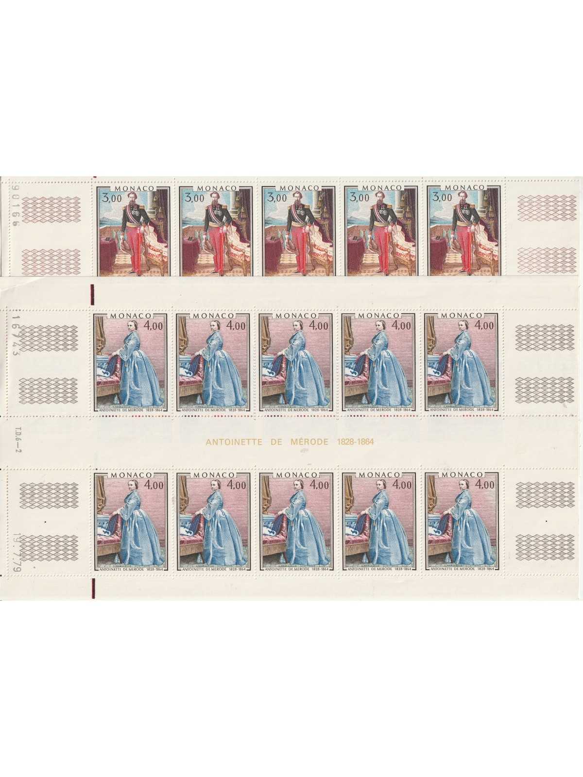 1979 MONACO QUADRI RITRATTI PRINCIPI 2 VAL IN FOGLI DA 10 - FOTO - MNH MF140074