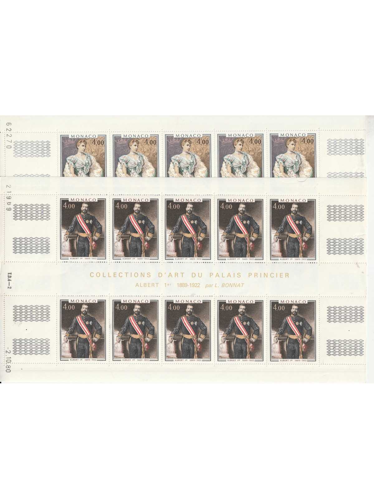 1980 MONACO QUADRI RITRATTI PRINCIPI 2 VAL IN FOGLI DA 10 - FOTO - MNH MF140092