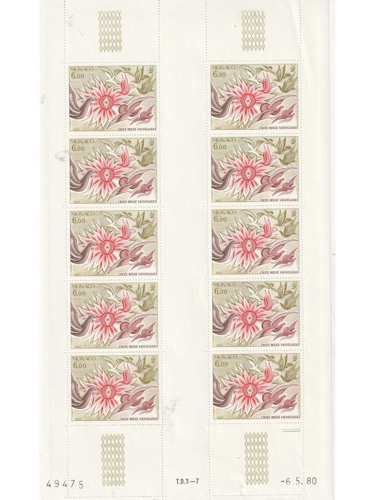 1980 MONACO QUADRI CROCE ROSSA FOGLIO DA10 FOTO MNH MF140093