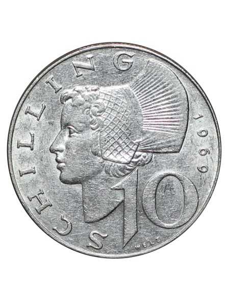 1969 AUSTRIA OSTERREICH MONETA 10 SCHILLING ARGENTO MF132655