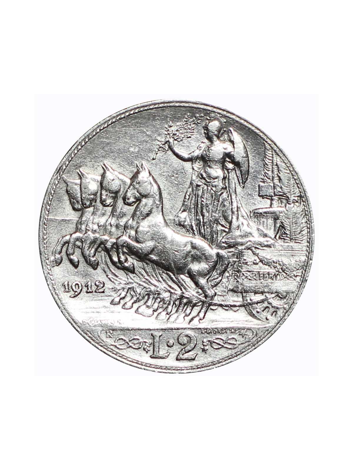 1912 REGNO D'ITALIA MONETA LIRE 2 QUADRIGA VELOCE VITT. EM. III ARGENTO MF132834