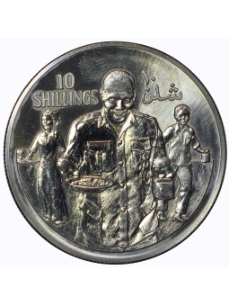 1979 SOMALIA 10 SHILLINGS DECIMO ANNIV. REPUBBLICA - PERSONE CON CIBO MF132846