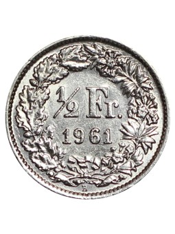 1961 SVIZZERA 1/2 FRANCO - B - MONETA ARGENTO SILVER MF131132