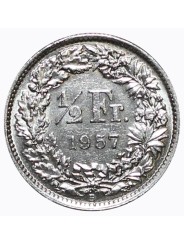 1957 SVIZZERA 1/2 FRANCO - B - MONETA ARGENTO MF134721