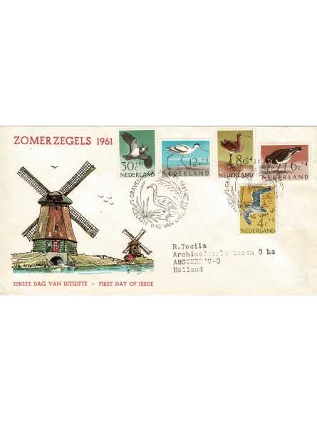 1961 OLANDA BUSTA FDC SERIE BENEFICENZA UCCELLI 5 V. MF7285
