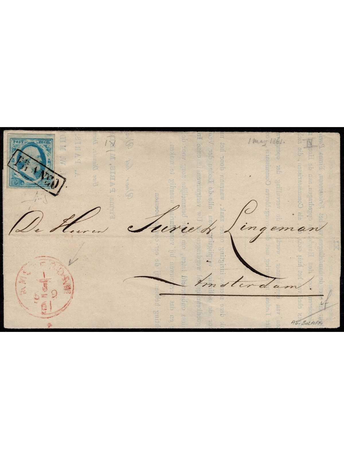 1852 OLANDA EFFIGIE RE GUGLIELMO II CENT 5 AZZURRO USATO SU CIRCOLARE MF9642