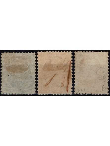 5 CENTESIMI AZZURRO ; 10 CENTESIMI ROSA CARMINIO ; 15 CENTESIMI ARANCIO