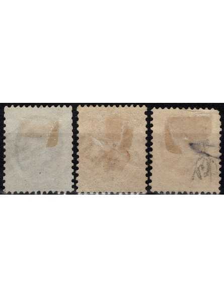 5 CENTESIMI AZZURRO ; 10 CENTESIMI ROSA CARMINIO ; 15 CENTESIMI ARANCIO