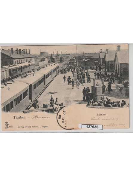 1902 CARTOLINA CINA TIENTSIN STAZIONE MOLTO ANIMATA MF127635