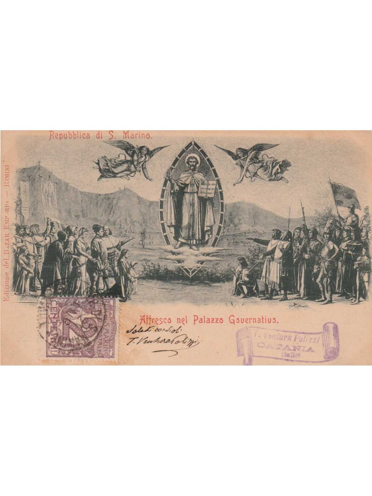 CARTOLINA SAN MARINO AFFRESCO NEL PALAZZO GOVERNATIVO VIAGGIATA MF129602
