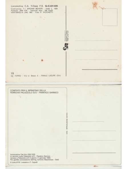 DUE CARTOLINE LOCOMOTIVA TRIFASE F.S. BROWN BOVERI E AUTOMOTRICE FIAT - NON VIAGGIATE