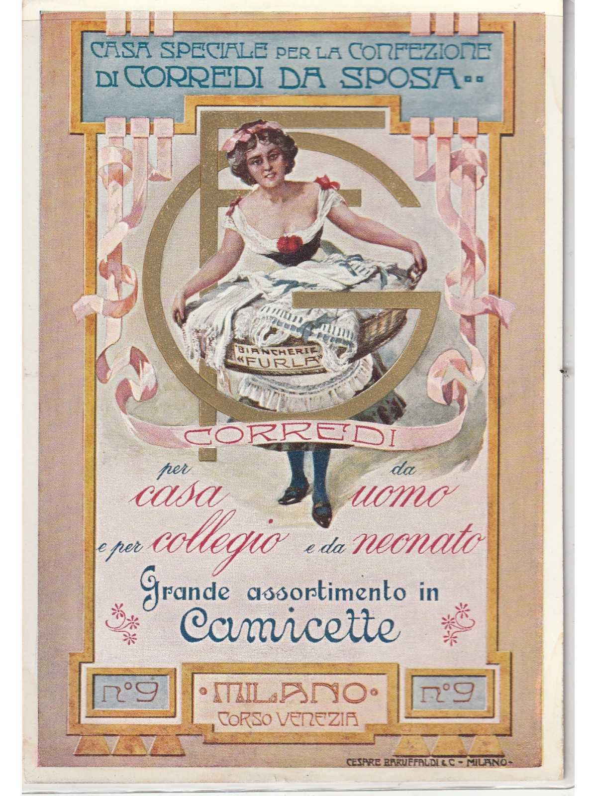 CARTOLINA PUBBLICITARIA CORREDI DA SPOSA BARUFFALDI & C. MILANO MF140365