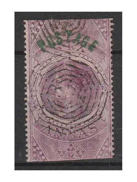 1866 INDIA INGLESE VITTORIA FISCALE SOPRASTAMPATO 6a. VIOLETTO 1 V. USATO N° 26 FOTO MF140378