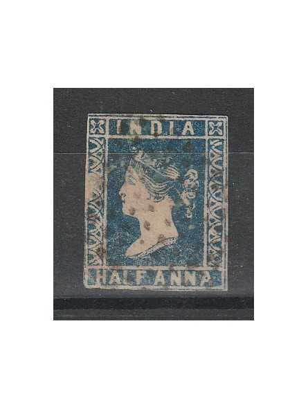1854 INDIA INGLESE VITTORIA 1/2 a. BLU 1 V. USATO N° 2A FOTO MF140395
