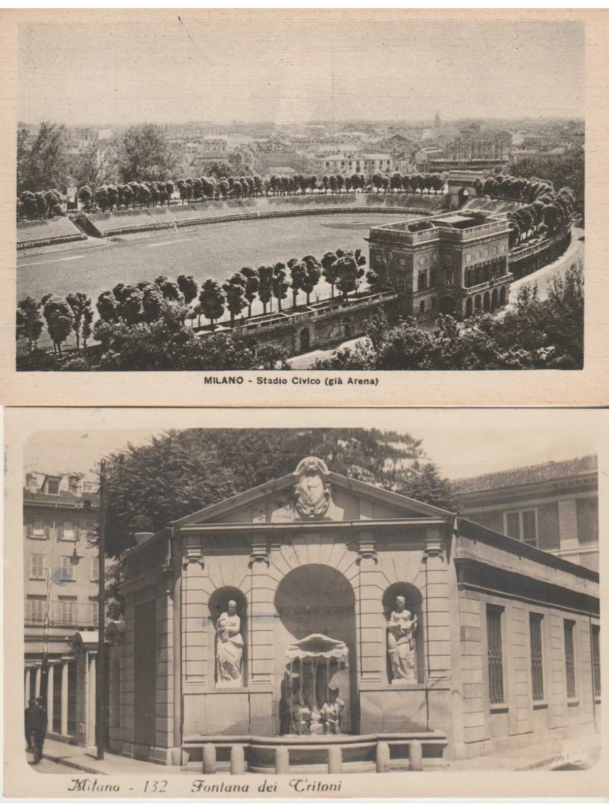 DUE CARTOLINE DI MILANO ARENA - FONTANA DEI TRITONI MF125773