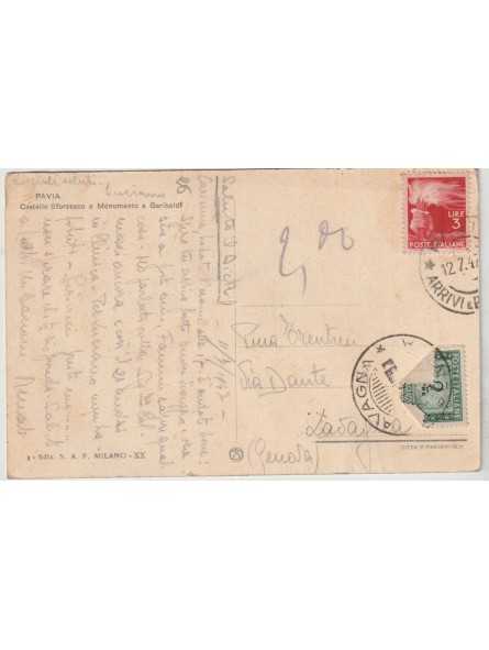 CARTOLINA LOMBARDIA PAVIA CASTELLO ANIMATA AUTOMOBILE MF129529